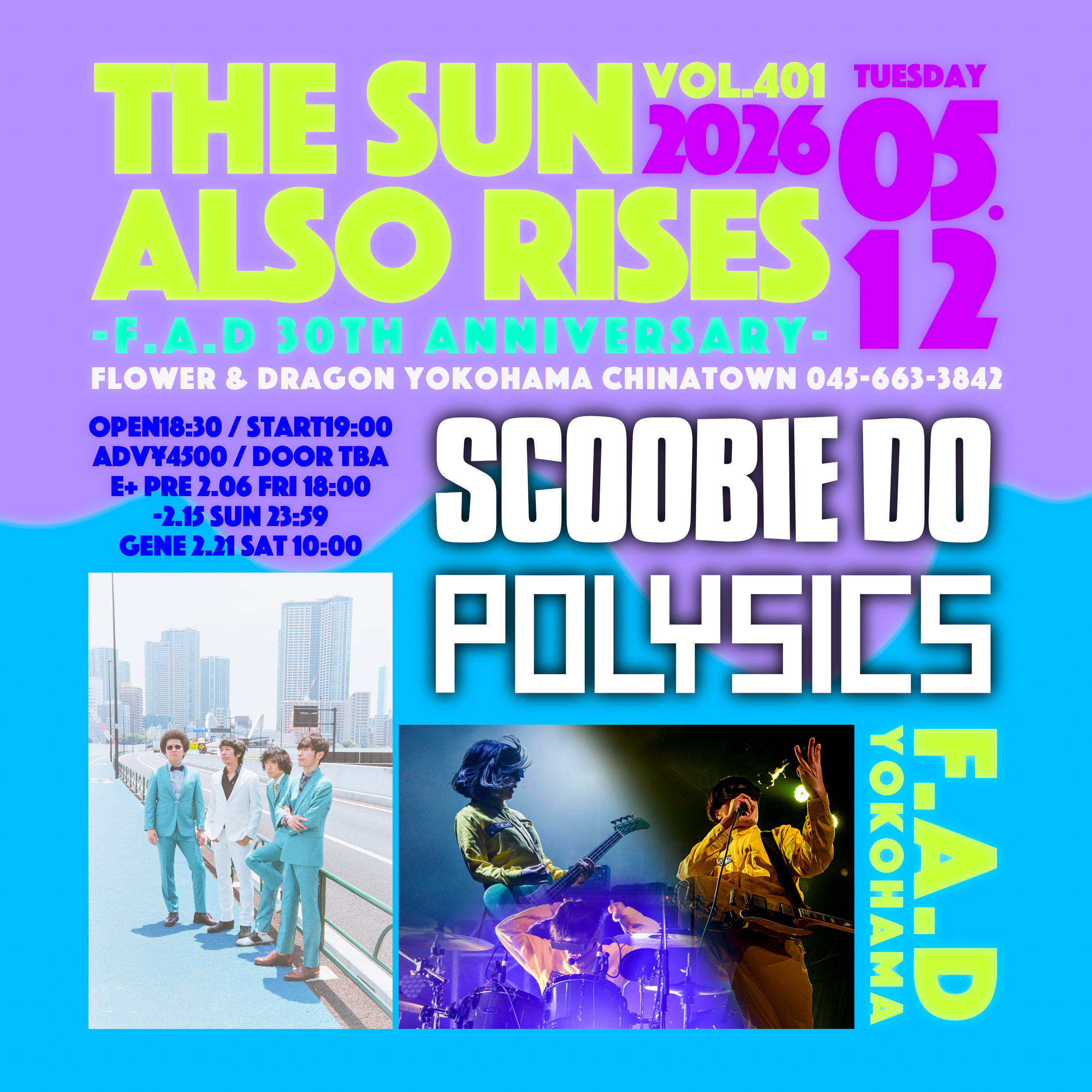 2026年5月12日(火)F.A.D YOKOHAMA 30周年記念イベントでSCOOBIE DOと2マンが決定しました!